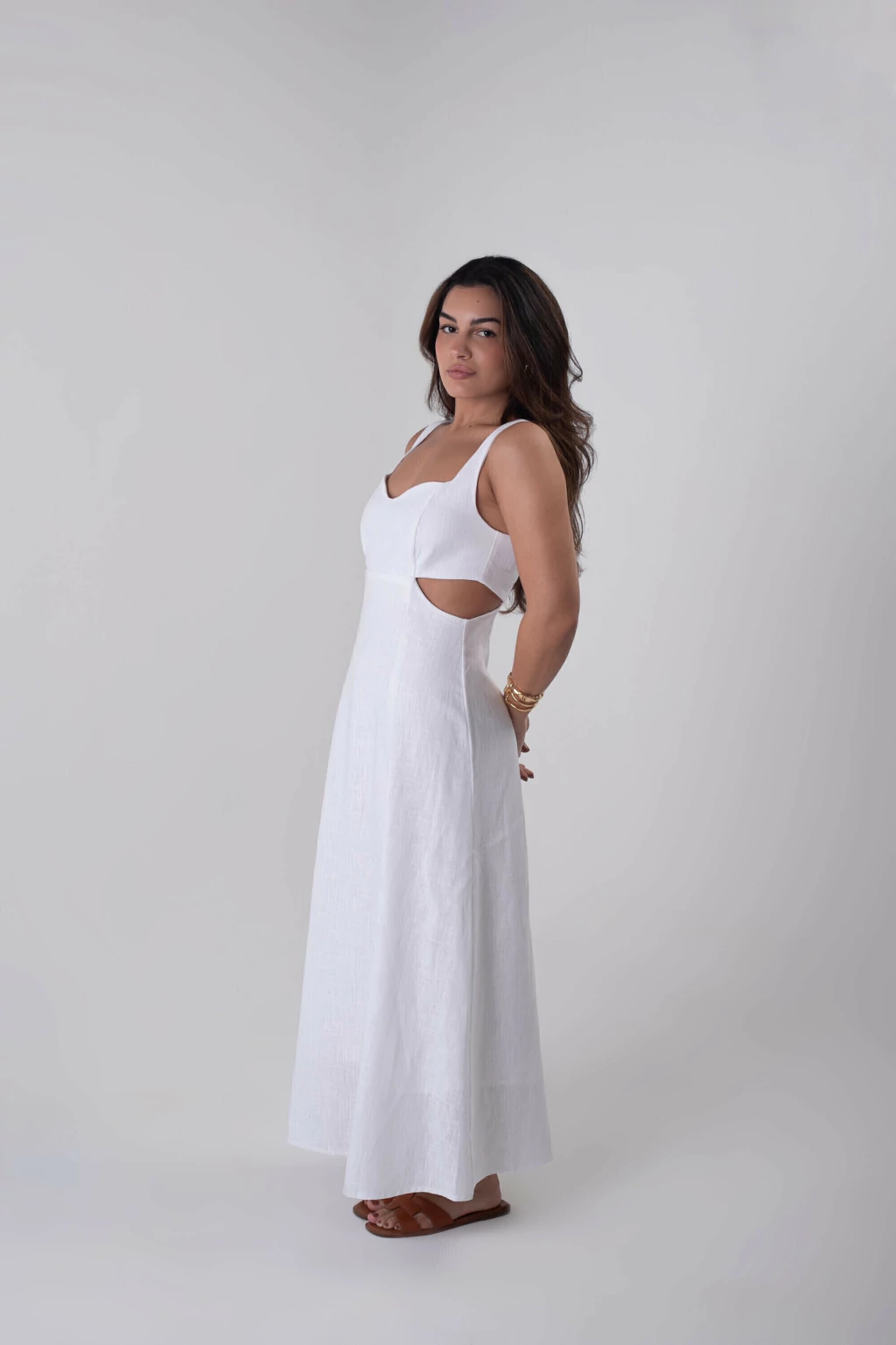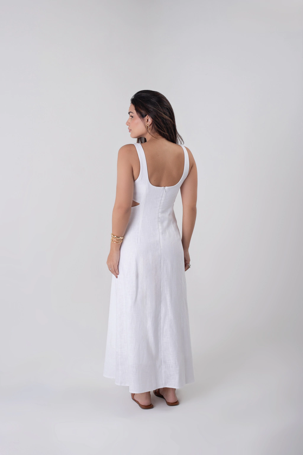 Vestido midi com recorte na lateral