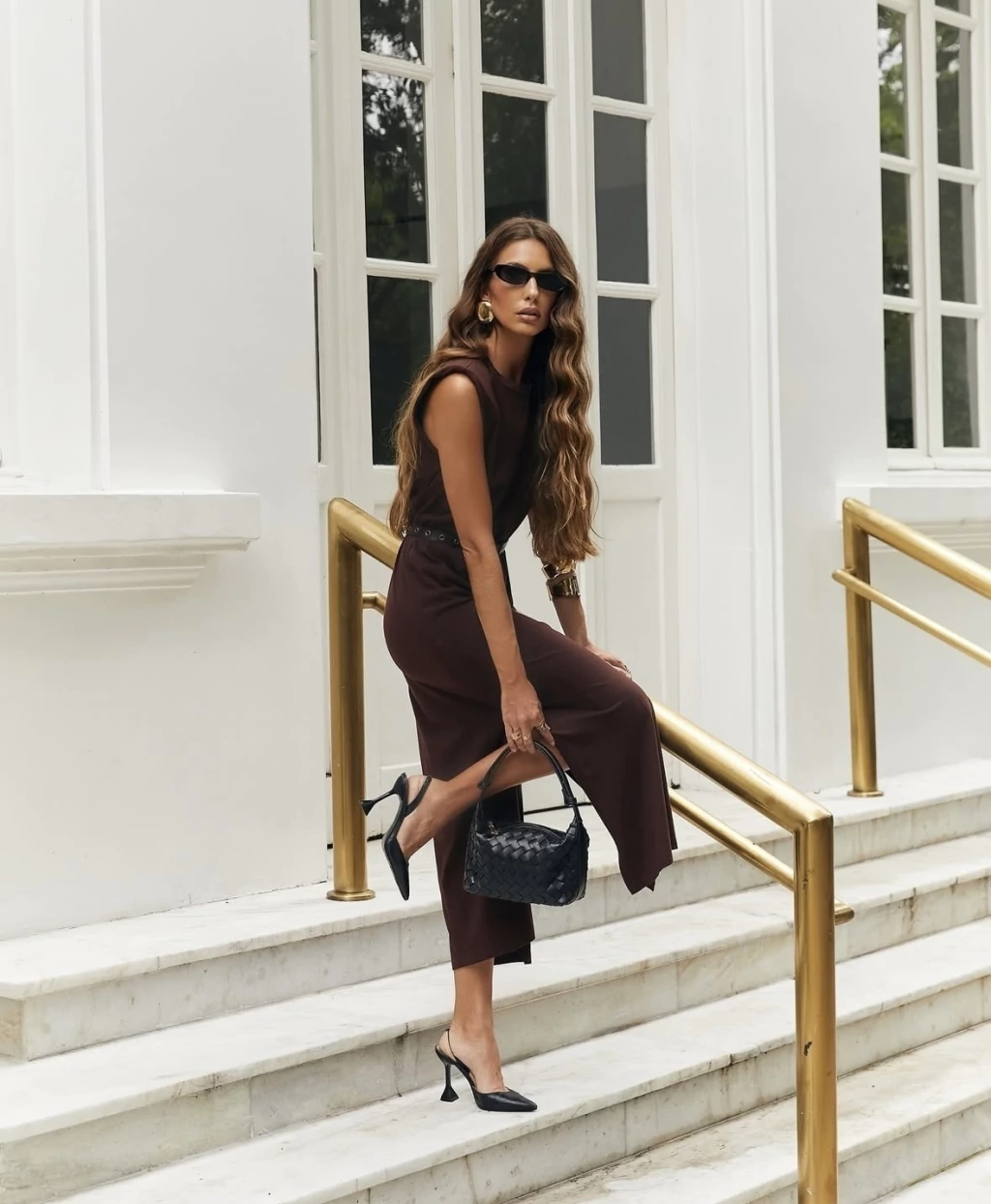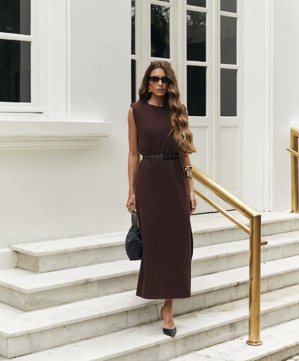 Vestido em malha na cor marrom.